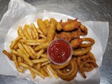 Haddock, scallop & shrimp served with fries, onion rings, and coleslaw.